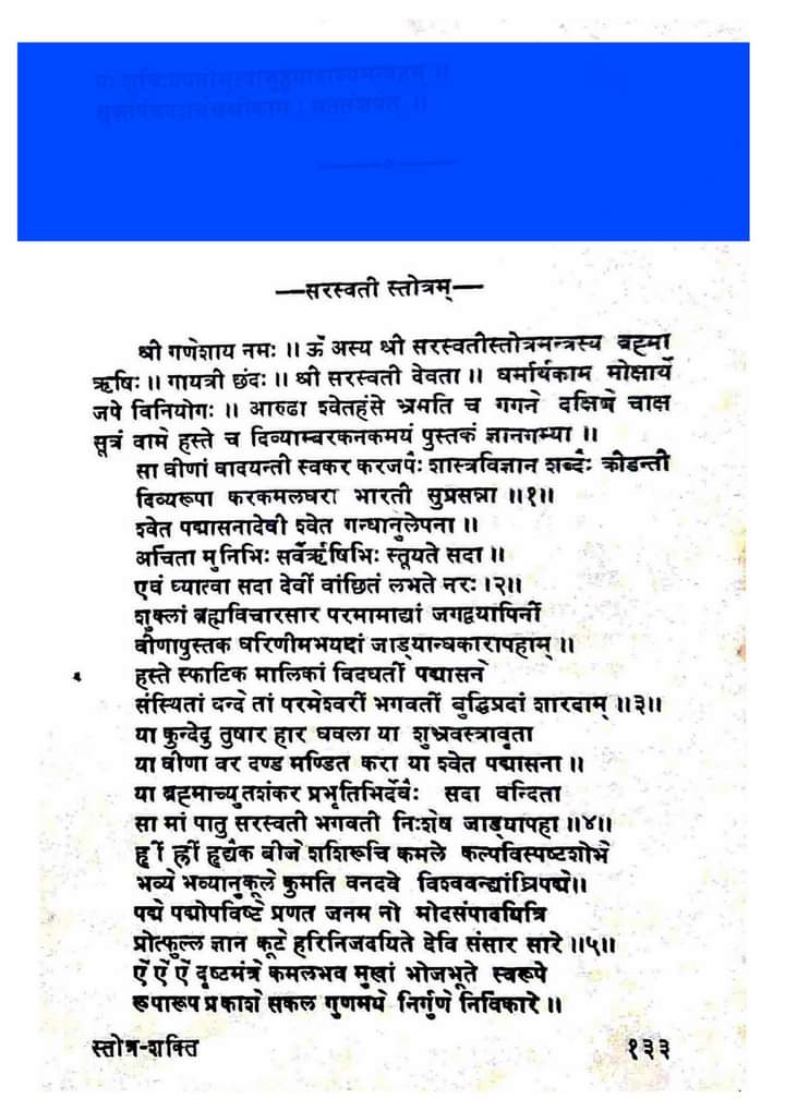 ब्रह्मकृत सरस्वती स्तोत्र प्रयोग