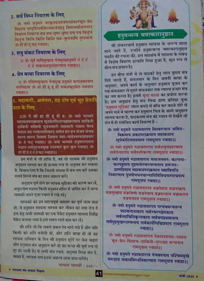 महामारी नाशक मंत्र का जप जरूर करें। नारायण मंत्र साधना विज्ञान में हनुमानजी का महामारी नाशक मंत्र दिया है। इस पोस्ट में महामारी नाशक मंत्र दिया है। शेयर करना है जिससे ज्यादा से ज्यादा लोग